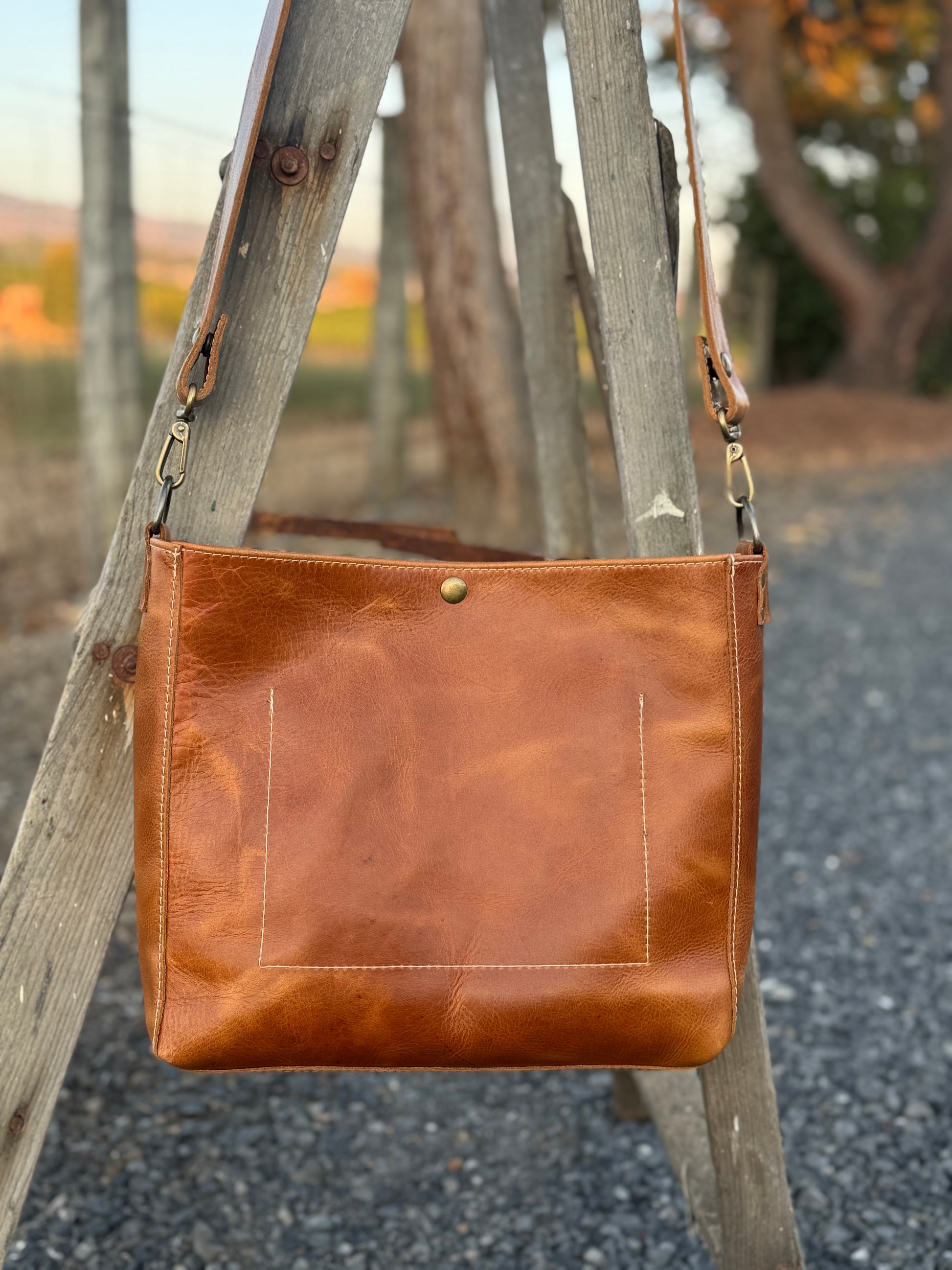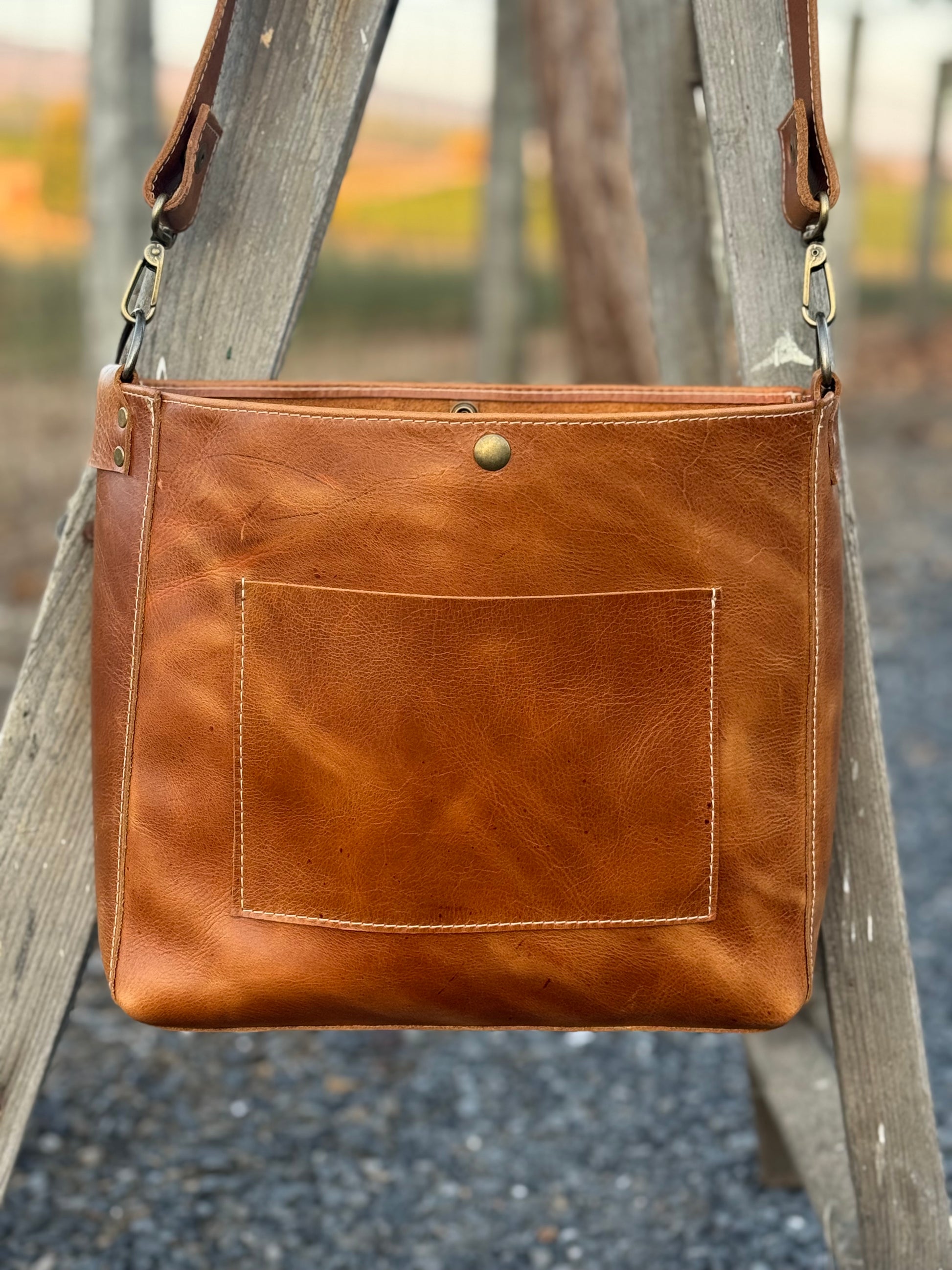 Crafted from exquisite leather, the Jenner Bag features a rich golden brown tone with warm highlights that deepen with age and wear. Its beautiful pull-up effect adds character over time, making each bag uniquely yours. Designed for versatility, it closes securely with a clasp and includes a convenient interior pocket. The strap allows you to wear the bag comfortably on one shoulder or across your body, offering a stylish and practical hands-free option for daily wear. Elevate your look with the timeless appeal and durability of the Jenner Bag.